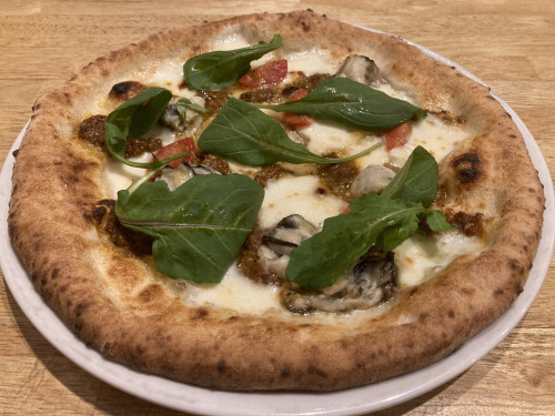 (モッツァレラ、牡蠣ラグーソース、ミニトマト、ルッコラ、レモン、パルミジャーノ)